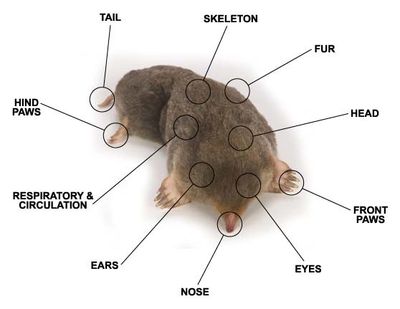 Male moles begin to search out female mates in late February through March. After a gestation of approximately 6 weeks, the female gives birth in April through May to a single litter of two to seven moles in a grass or leaf-lined nesting chamber. This chamber is typically 5 - 18 inches underground and is frequently found under a large stone, tree, or man-made obstacle such as a patio or sidewalk. Maturation occurs rapidly, and pups are weaned from their mother's milk in approximately 4 weeks. Shortly thereafter, the female forcibly disperses her offspring which are nearly full grown and difficult to distinguish from adults. The young establish their own tunnel systems nearby through either excavation or adoption of abandoned ones. This initial dispersal occurs from mid-April to late-June. A second dispersal period occurs in the fall with the young establishing their own homeranges typically within 1/4 mile of the maternal burrows. Sexual maturity is reached the following spring, perpetuating the reproductive cycle.